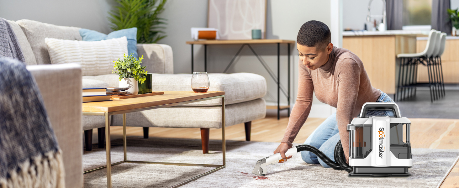 Der Spotmaster ist mit einer breiten Bürste ausgestattet, die eine größere Reinigungsfläche abdeckt, die Reinigungseffizienz erhöht und die Anzahl der Hin- und Herbewegungen reduziert. Die breite Bürste verteilt die Saugleistung und das Reinigungsmittel gleichmäßiger, wodurch Flecken und Staub auf Teppichen und Polstern gründlicher entfernt werden können. Sie eignet sich hervorragend für die großflächige Reinigung im gesamten Haus.